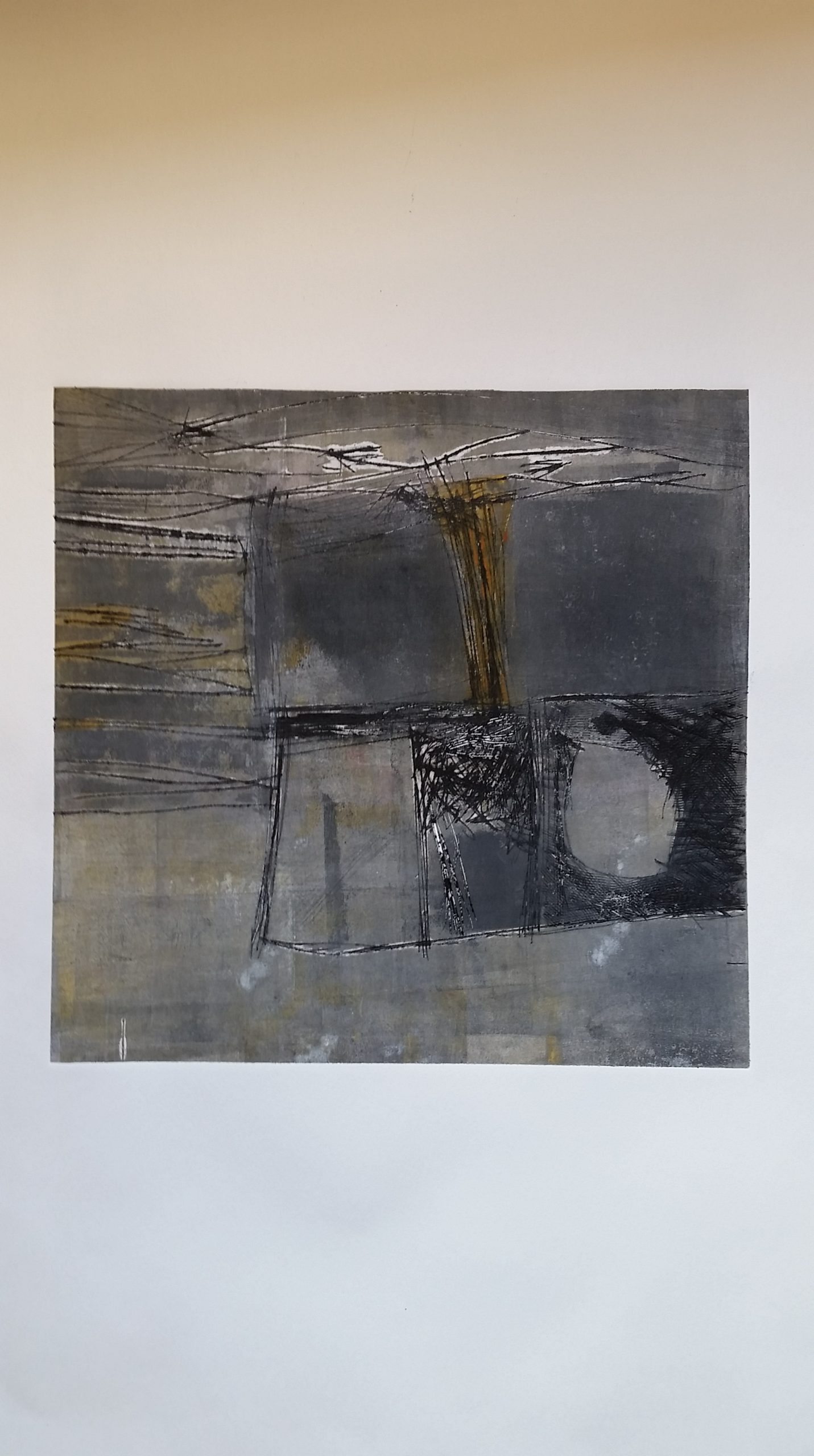 I’ll come back to this another time with images from prints inspired to a degree by Klee and Diebenkorn. I’m also planning some new work which will attempt to marry the geometry of this work to another interest of mine, the rock carvings and standing stones of the Neolithic era. Here are a taster with a collagraph monoprint I called ‘Frome Westport to Ocean Park’.